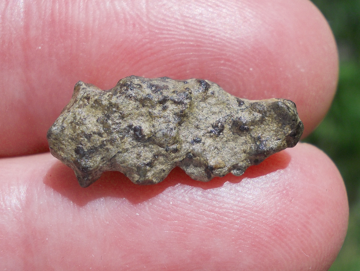 Physical characteristics: Weathered exterior surfaces of the stones are brown with a distinctive knobby appearance. Fresh interiors are greenish-gray with darker olivine phenocrysts visible.