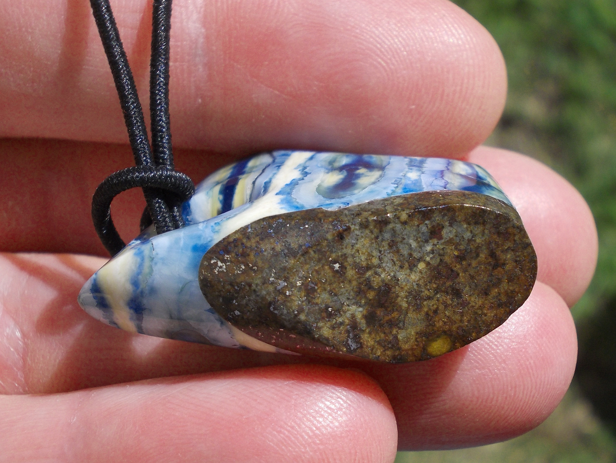 Une météorite type chondrite ordinaire a été incorporé dans un morceau de dent de mammouth coloré.
